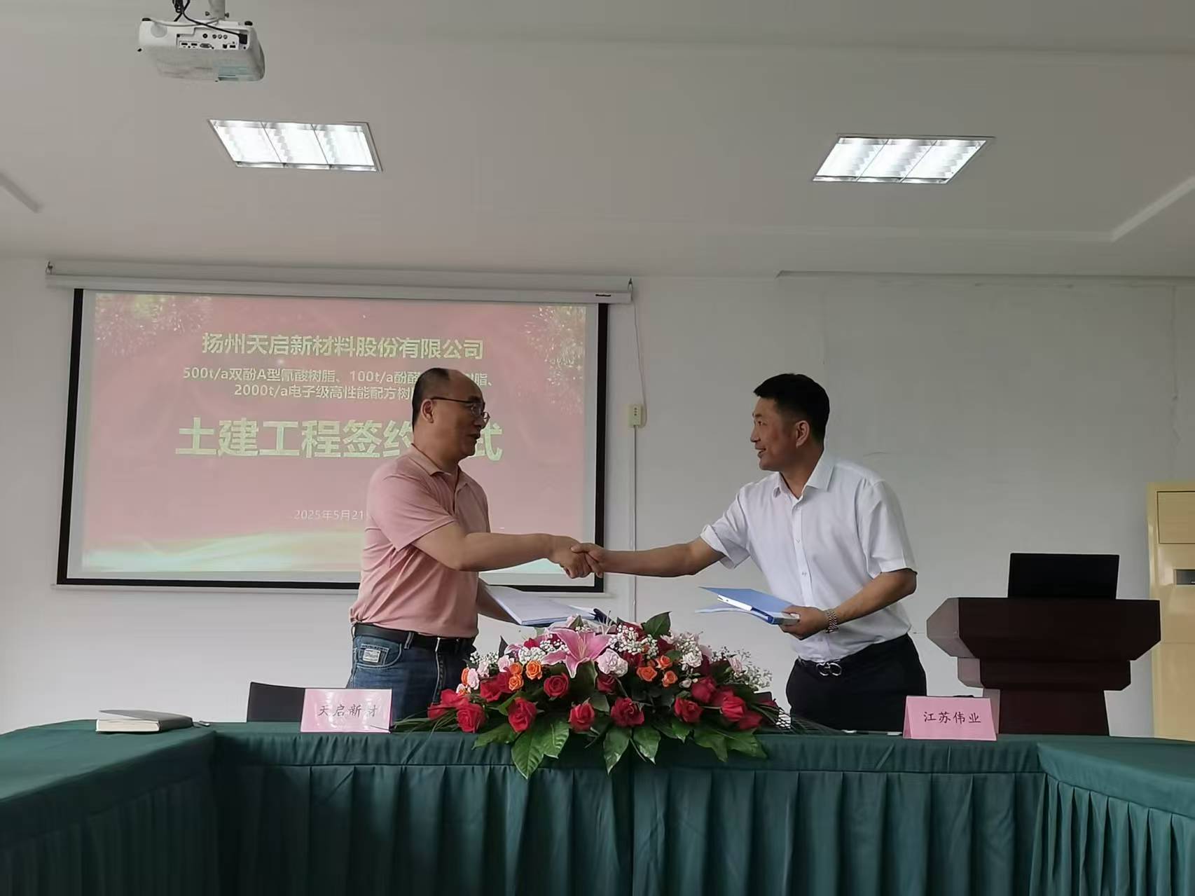 2025年5月21日,扬州天启新材料股份有限公司二期项目土建工程签约仪式在公司会议室圆满举行。